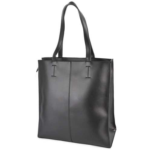 Аксесуар з двома нерегульованими зручними ручками середньої довжини, які закріплені металевими пуклями. Перевагою стане комбінація двох кольорів, які не тільки візуально прикрашають виріб, а і захищають внутрішню сторону ручок від вираженого забруднення. Великі прямокутні форми сумки з легкістю розміщують документи формату А4. Дно укріплене та оснащене металевими ніжками, що мінімізує просідання та пошкодження. На тильній зовнішній стороні розміщена врізна кишеня на блискавці.