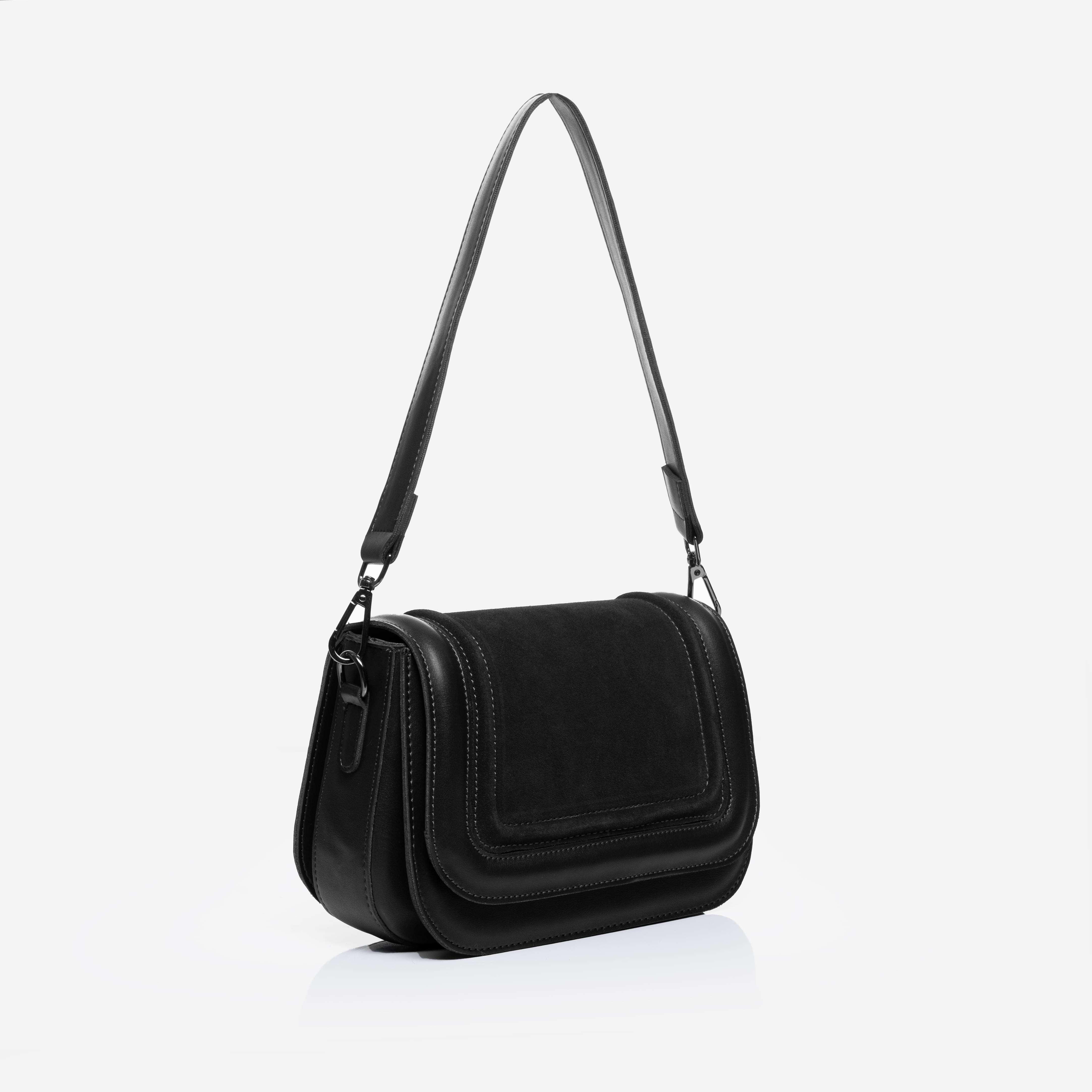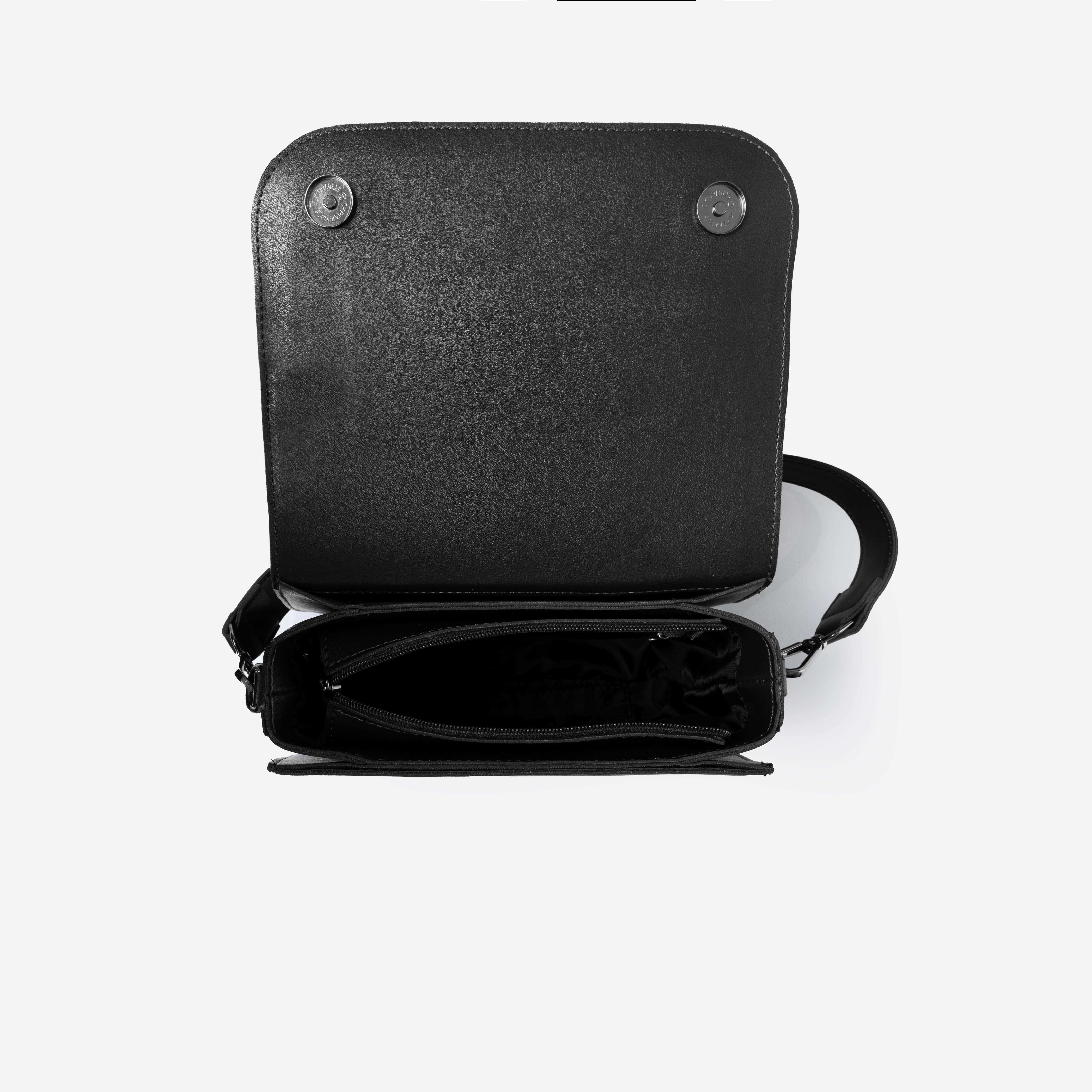 Весь виріб зачиняється на блискавку, яка накривається клапаном на магнітній кнопці. Сумочка має довгий ремінець, який можна відрегулювати під потрібний розмір, для легкого транспортування через плече, та короткий.