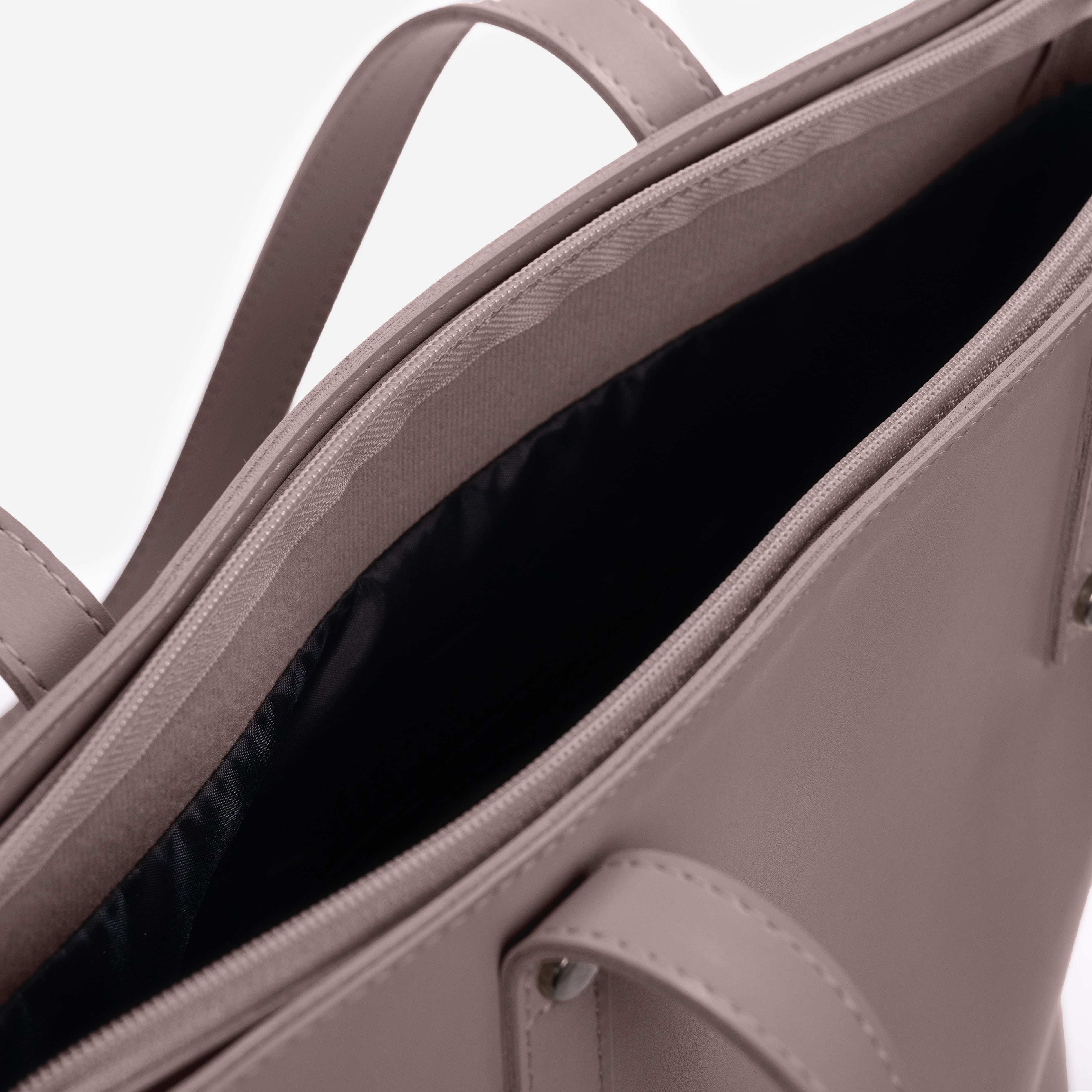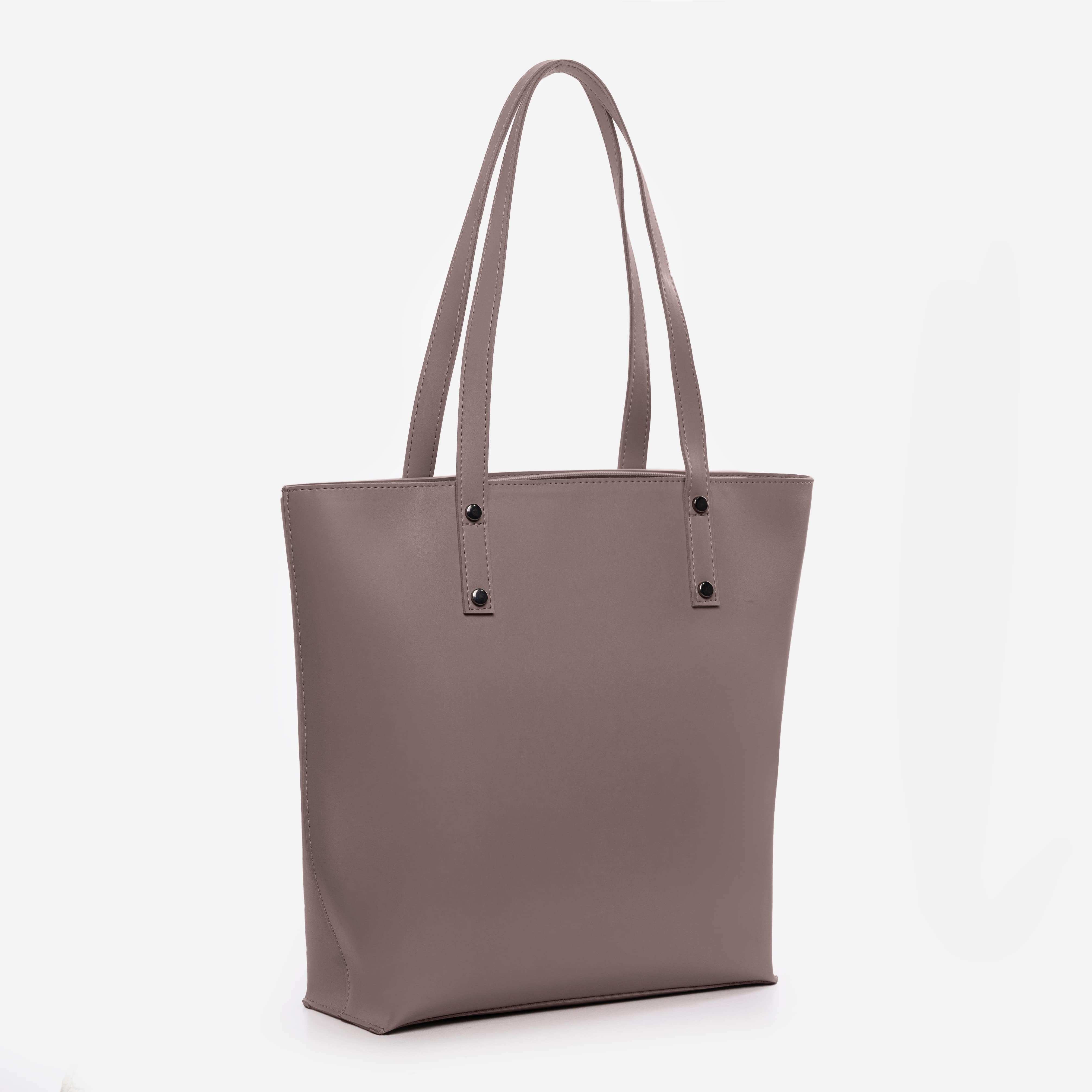 Модель виготовлена з шкірозамінника високої якості з легким відблиском. Простий класичний дизайн та великий розмір оригінально поєднують в собі комфорт та елегантність. Ручки зручної середньої довжини, що дає можливість змінювати варіант транспортування (на плечі або в руці). На задньому плані розміщена врізна кишеня на блискавці. Заокруглені форми дна запобігатимуть швидкому пошкодженню, а металеві ніжки перешкоджатимуть ковзанню по нерівній поверхні.
