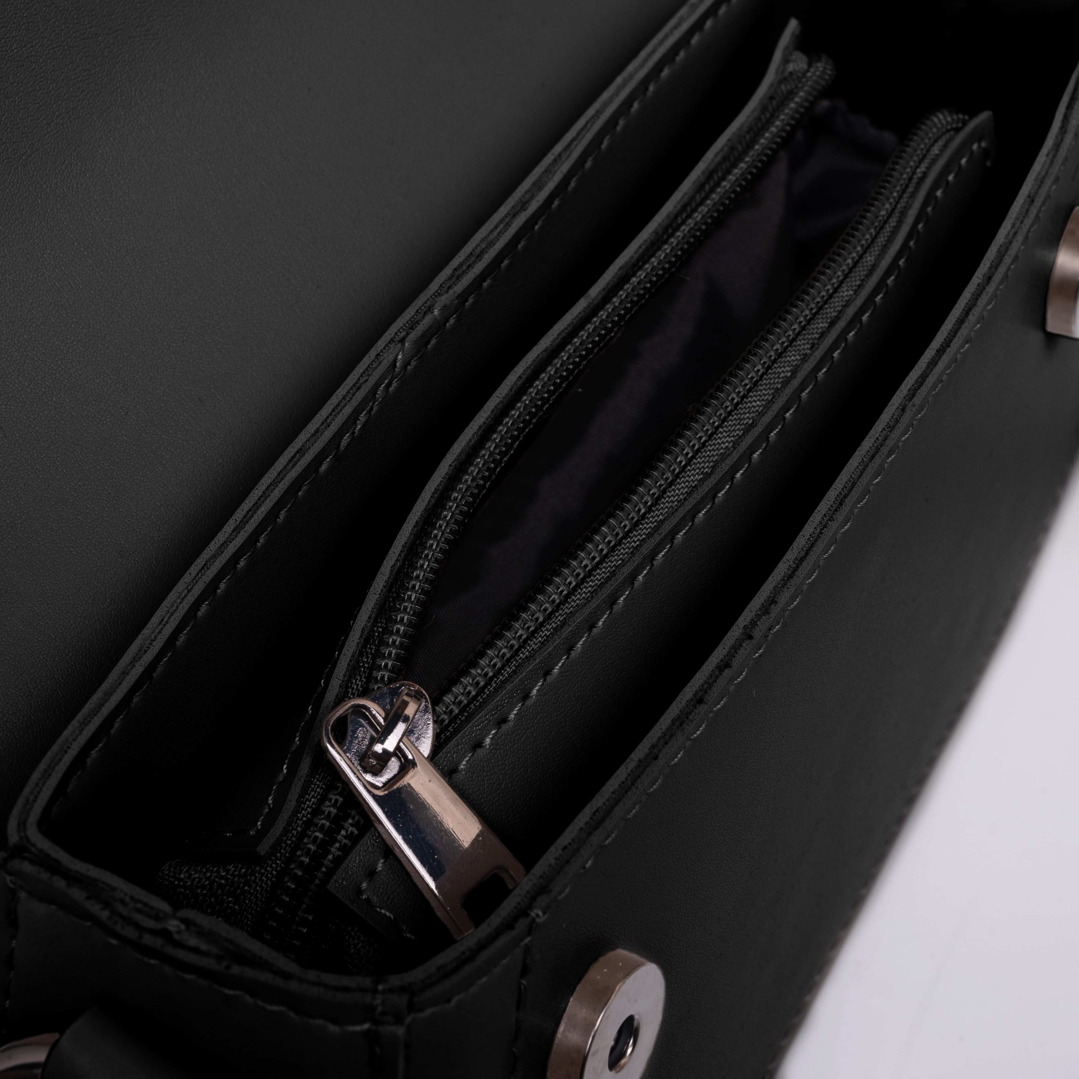 Сумка на одне загальне відділення. Не дивлячись на невеликі розміри, сумочка виявилась достатньо вмісткою. Весь виріб зачиняється на блискавку. Довгий ремінь з можливість регулювання довжини виготовлений з шкірзаміннику. На задній стінці вмонтована кишеня, яка зачиняється на блискавку.