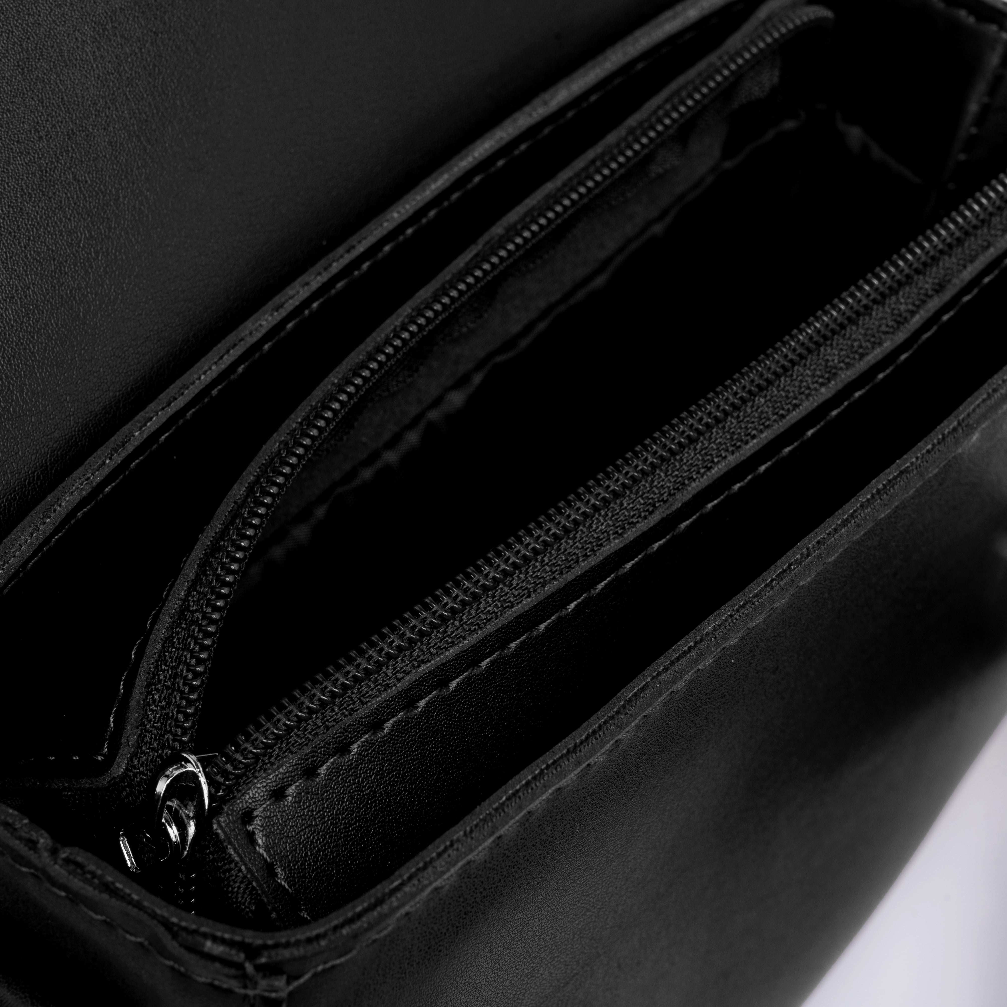 Невелика жіноча сумочка виготовлена з високоякісного шкірзамінника та якісної надійної фурнітури в кольорі - нікель. Одне відділення зручно розмістить великий гаманець, мобільний телефон та необхідні дрібниці. Всередині також розташована одна кишеня на застібці.
