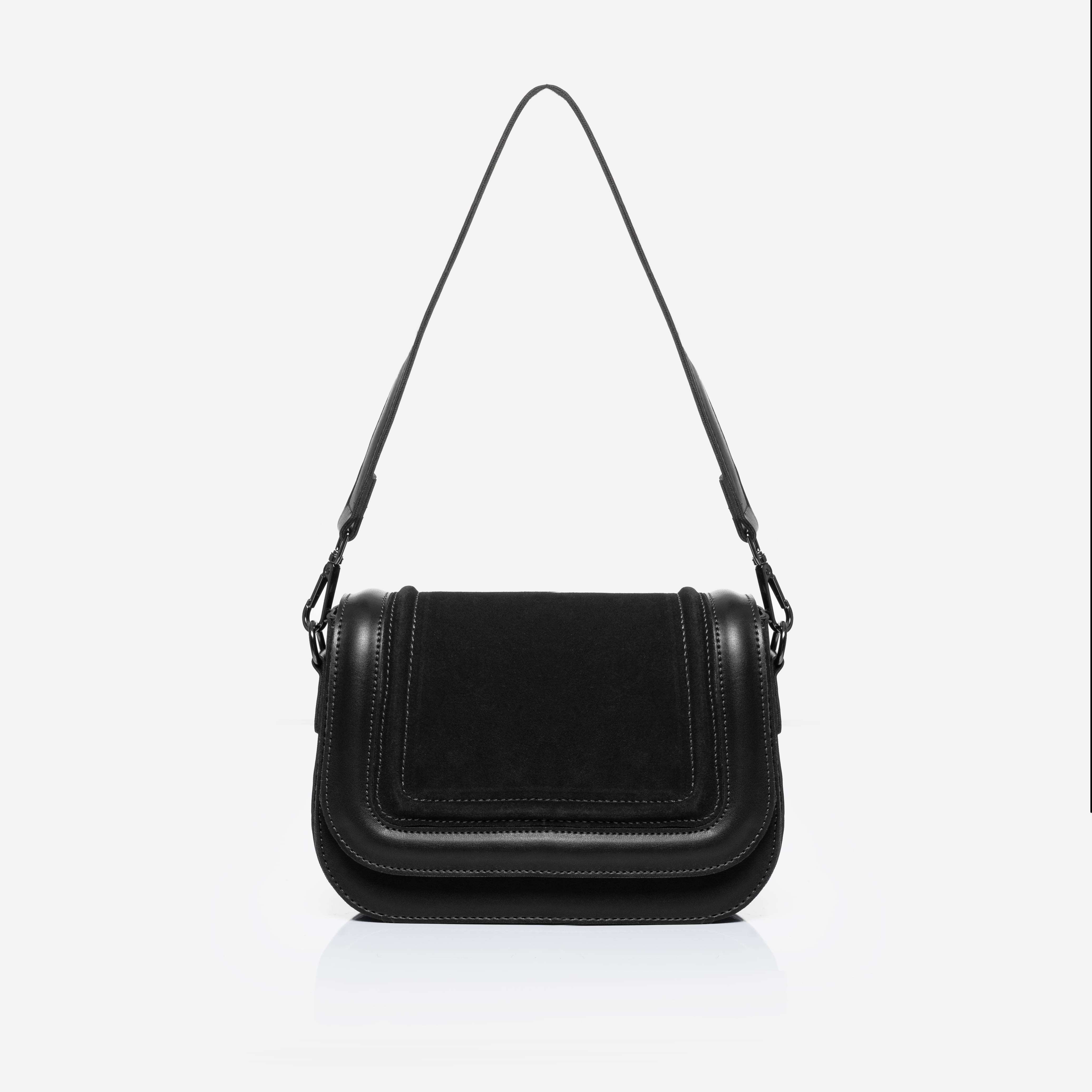 Весь виріб зачиняється на блискавку, яка накривається клапаном на магнітній кнопці. Сумочка має довгий ремінець, який можна відрегулювати під потрібний розмір, для легкого транспортування через плече, та короткий.