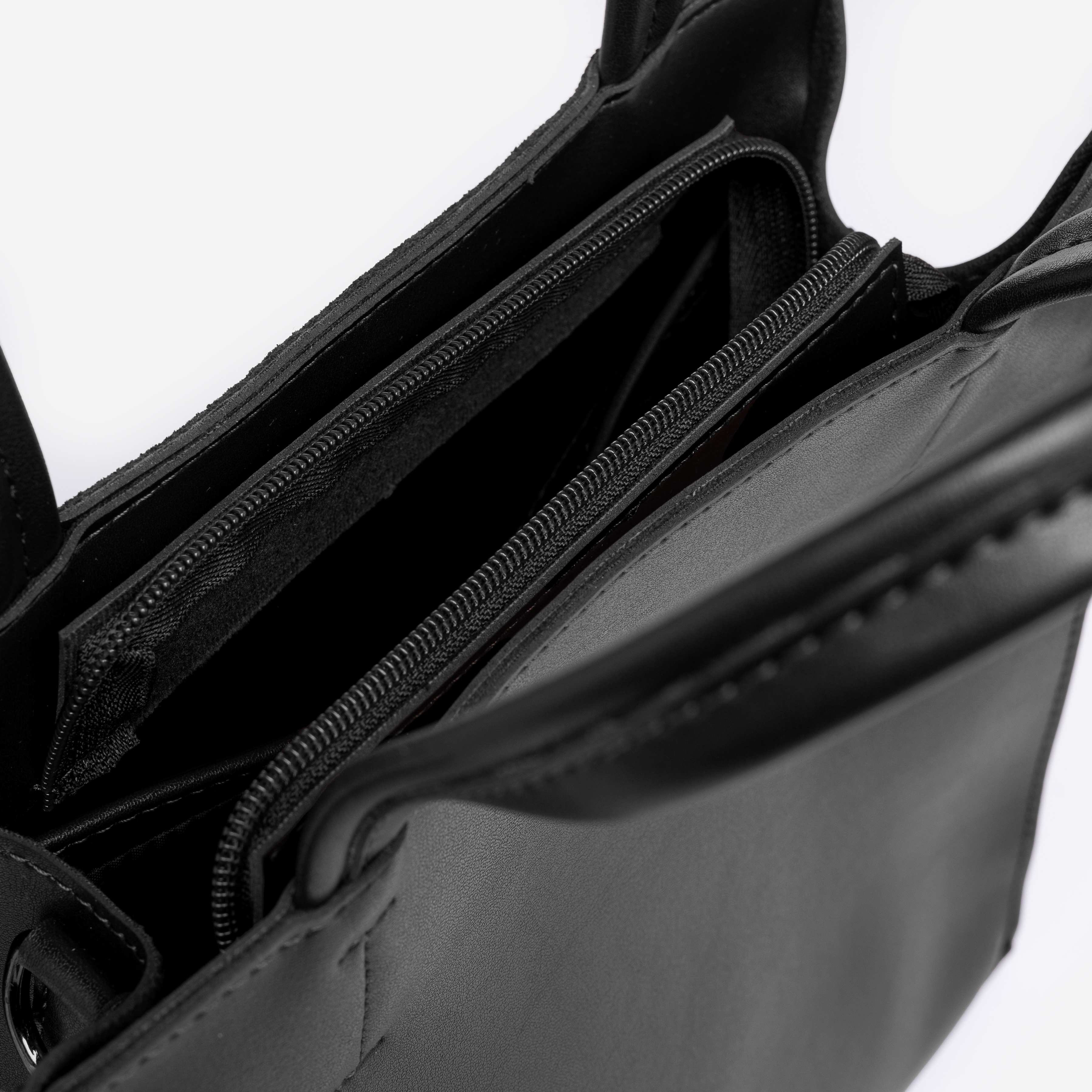 Сумку, з простим кроєм та мінімальним оздобленням, виконано з шкірозамінника високої якості, щоб її використання було максимально тривалим та приємним. Сумочка має дві короткі ручки, які розраховані на комфортне транспортування в руці. До комплекту входить довгий регульований ремінець.