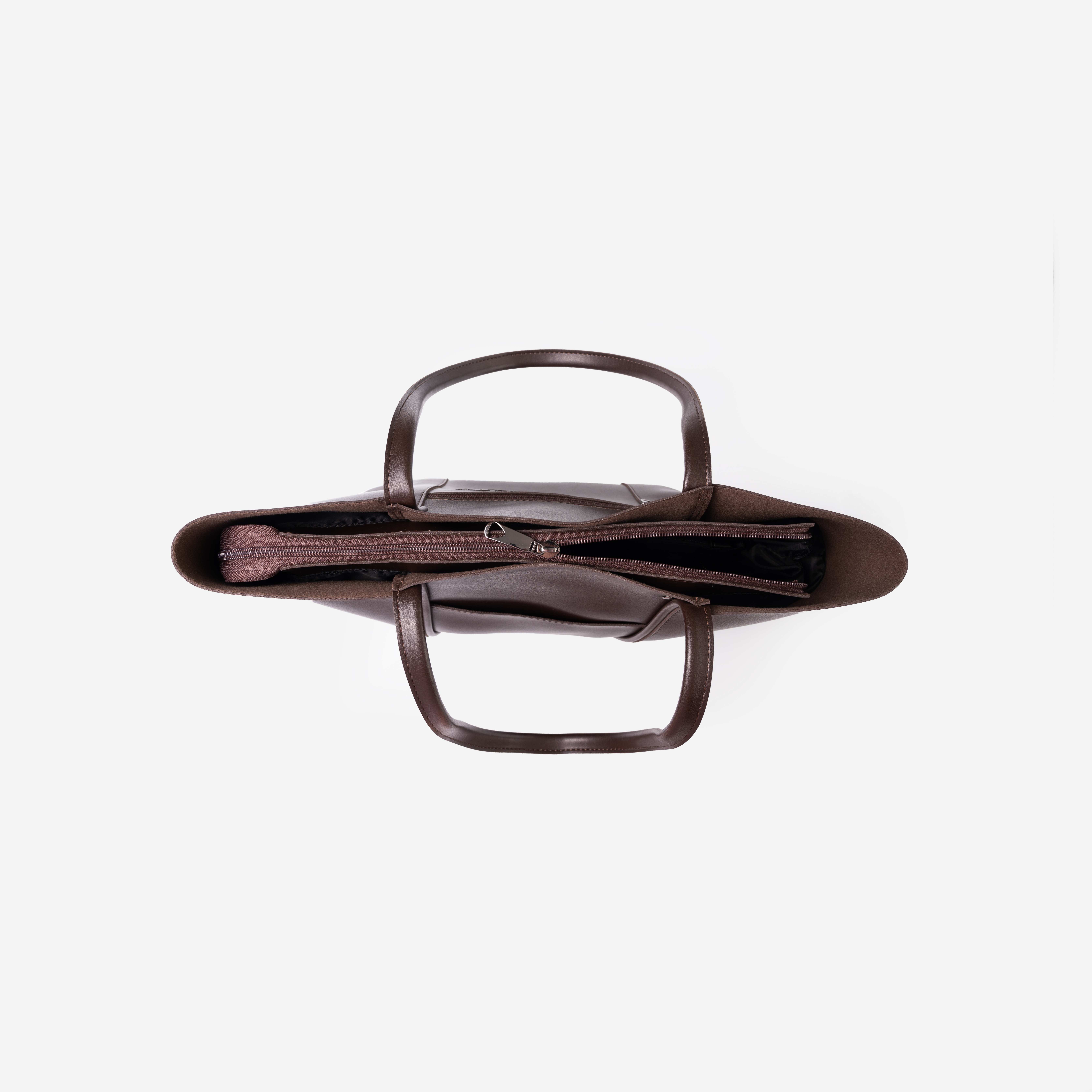 Сумка з двома ручками середньої довжини, які ручно носити в руці та на плечі. Передня та задня зовнішні стінки оздоблені великими накладними функціональними кишенями, які зручно зачиняються магнітними застібками. Широке тверде дно спеціально оснащене металевими пуклями, які захищатимуть від пошкоджень.