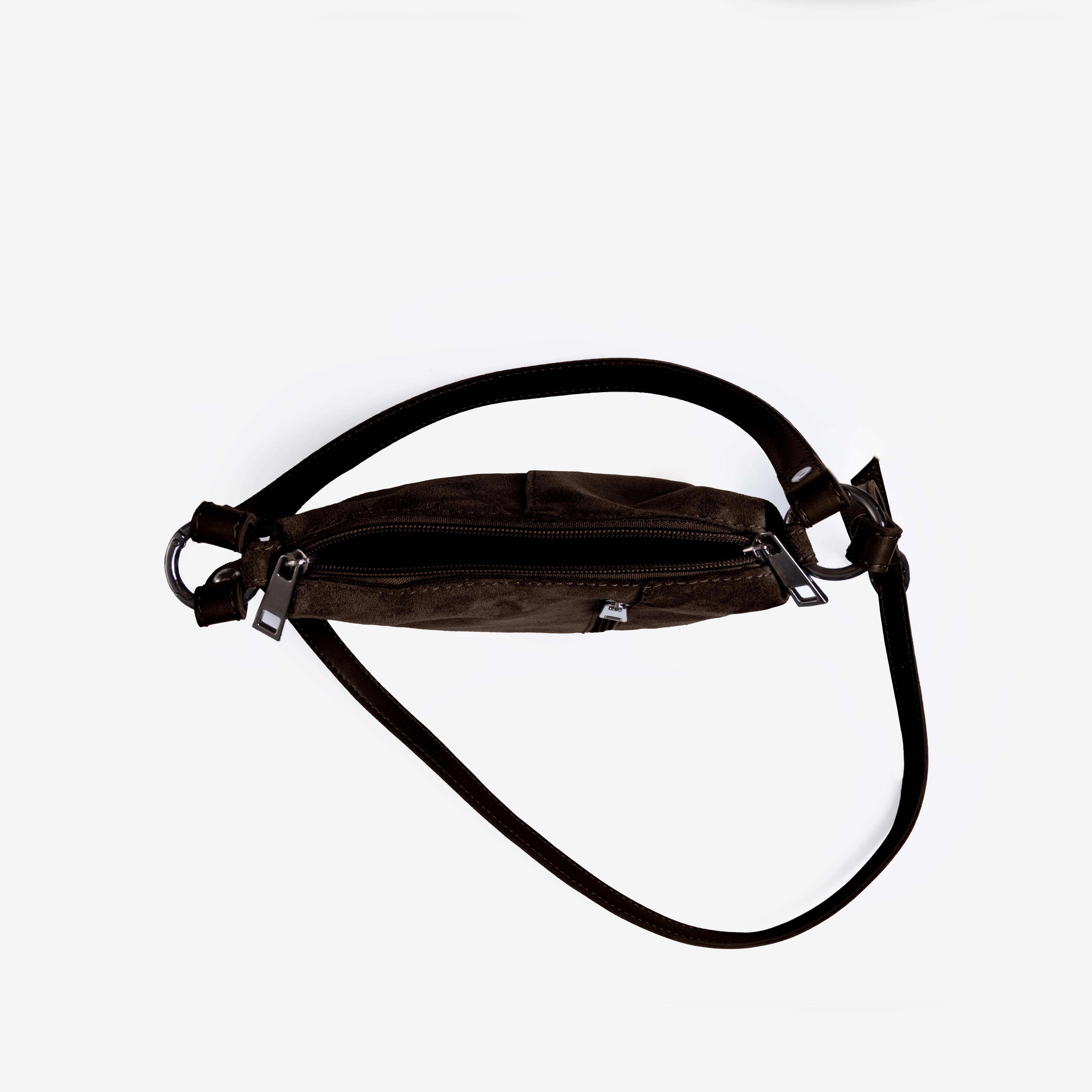 Крос-боді модель виготовлена зі шкірзамінника високої якості та натурального замшу. Сумочка невеликих розмірів на одне відділення, але дуже вмістка. Не пласка і має потовщене дно на металевих ніжках, що гарно зберігає форму та запобігає пошкодженням. Наявна одна коротка ручка та один довгий регульований плечовий ремінець