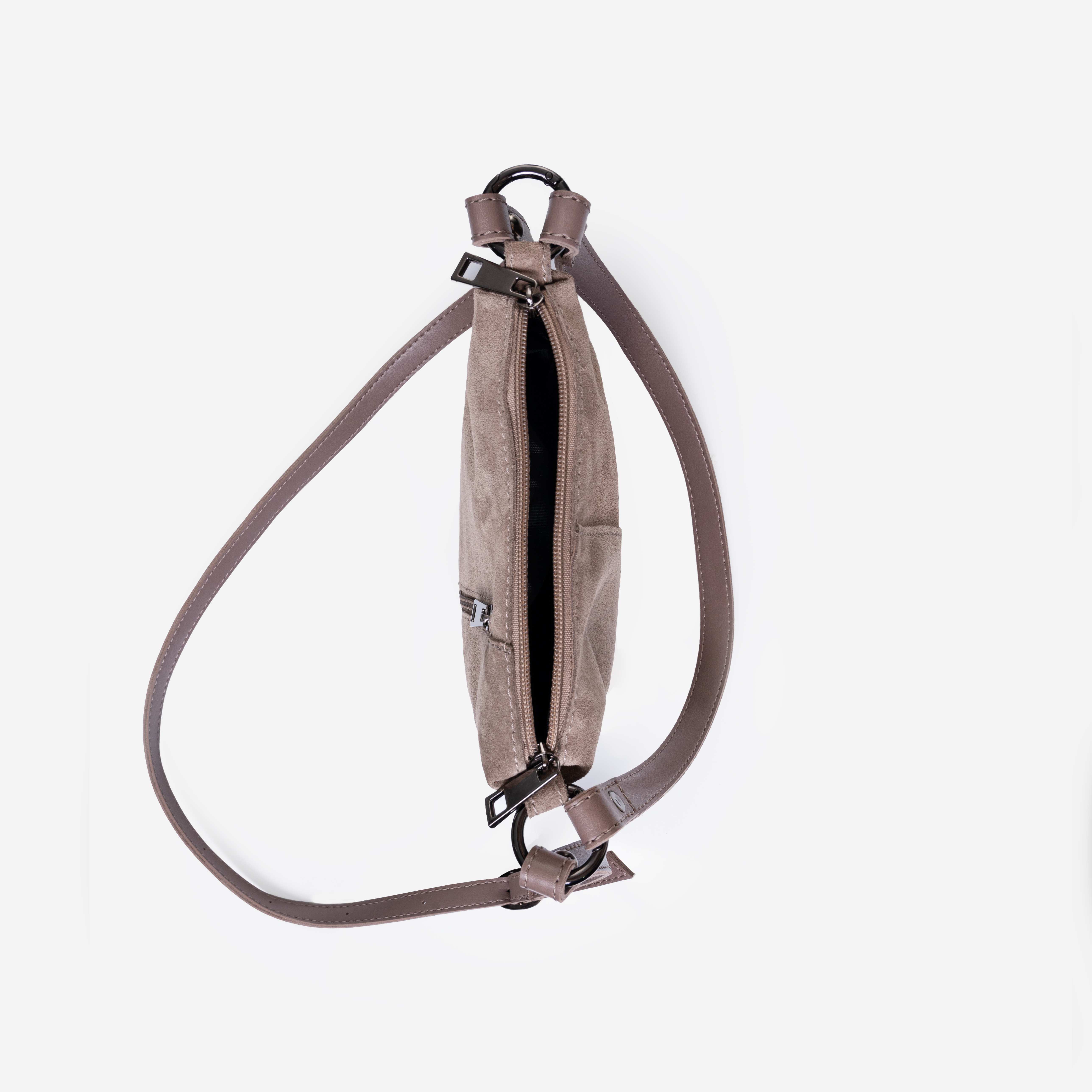 Крос-боді модель виготовлена зі шкірзамінника високої якості та натурального замшу. Сумочка невеликих розмірів на одне відділення, але дуже вмістка. Не пласка і має потовщене дно на металевих ніжках, що гарно зберігає форму та запобігає пошкодженням. Наявна одна коротка ручка та один довгий регульований плечовий ремінець