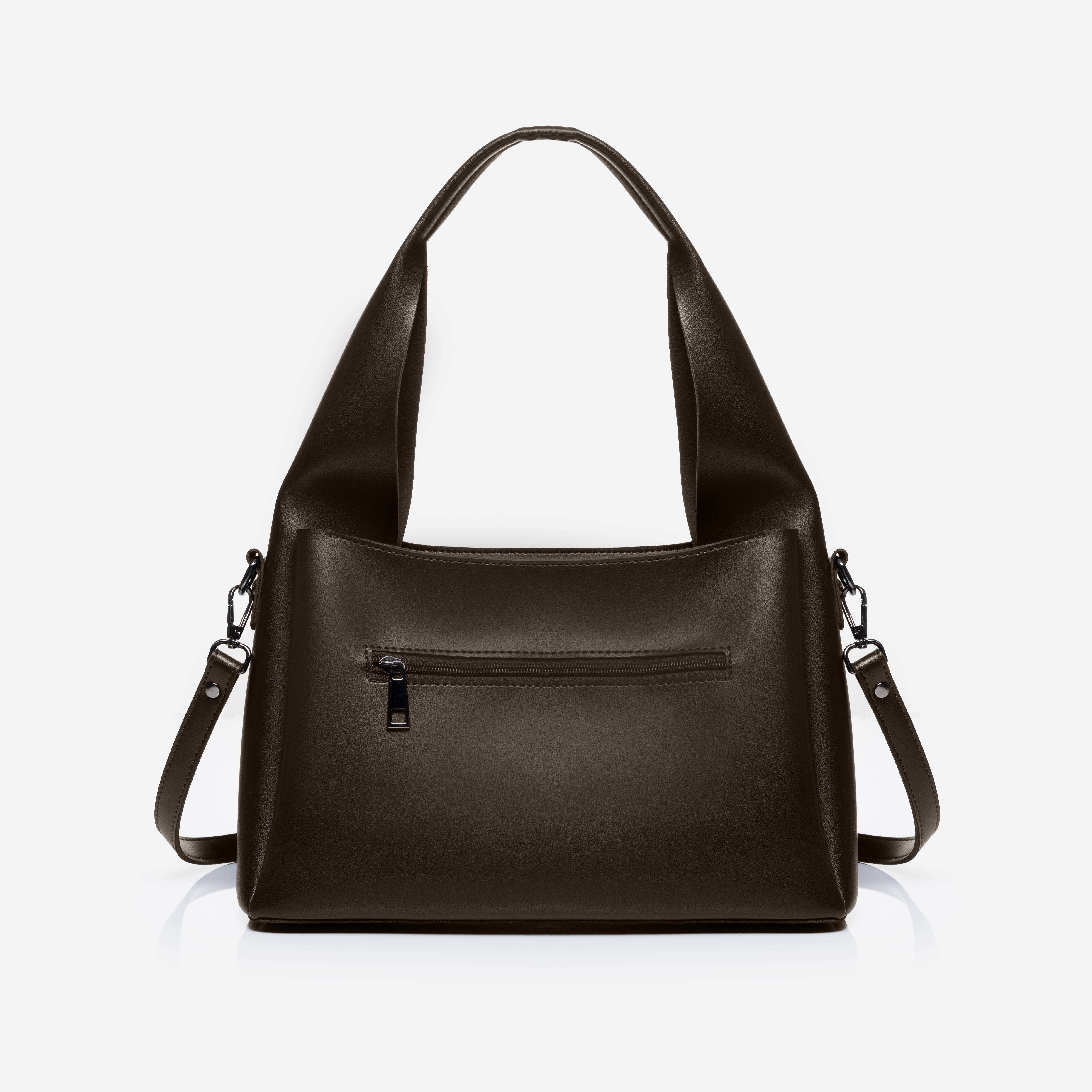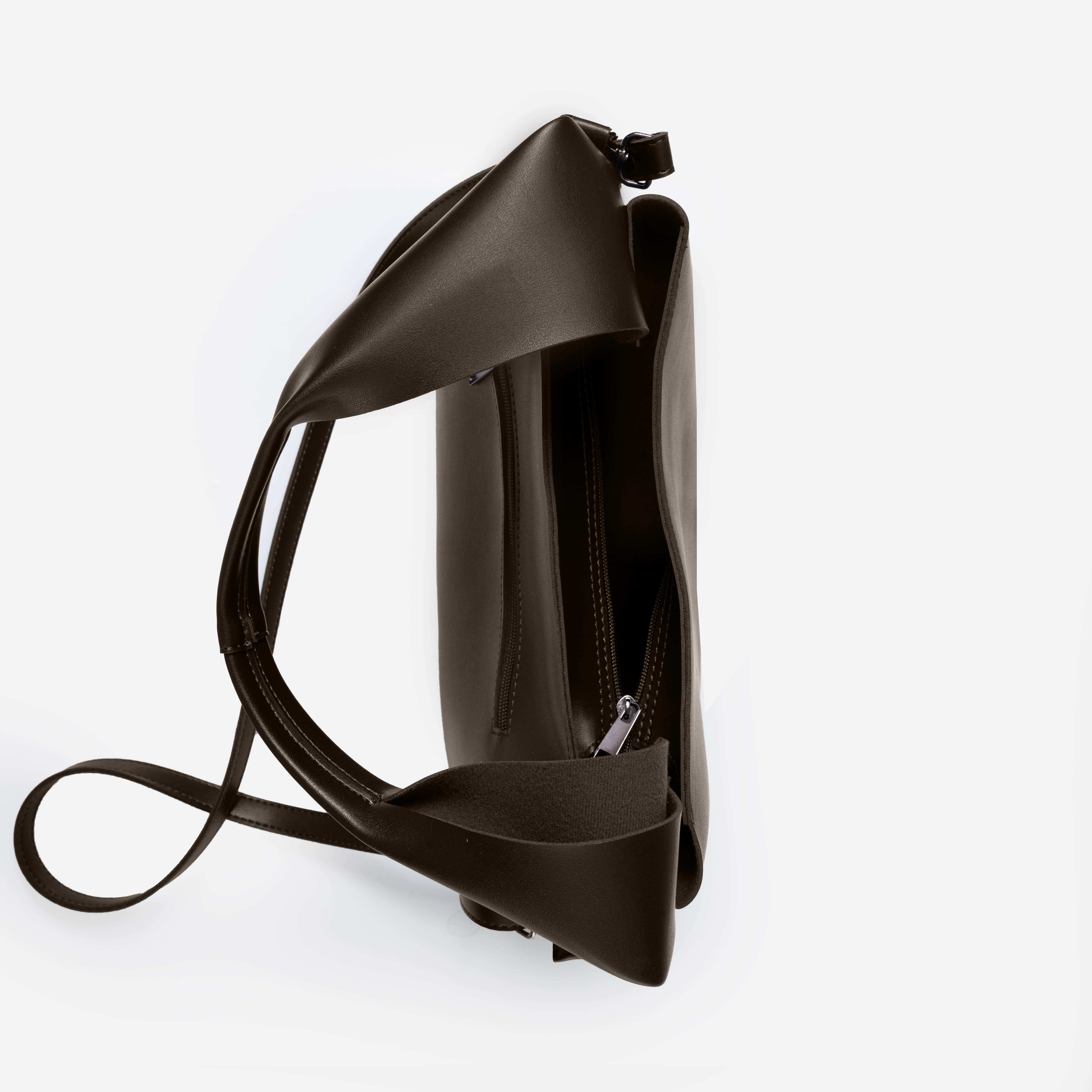 Сумка на одне загальне відділення. Не дивлячись на невеликі розміри, сумочка виявилась достатньо вмісткою. Весь виріб зачиняється на блискавку. Довгий ремінь з можливість регулювання довжини виготовлений з шкірзаміннику. На задній стінці вмонтована кишеня, яка зачиняється на блискавку.